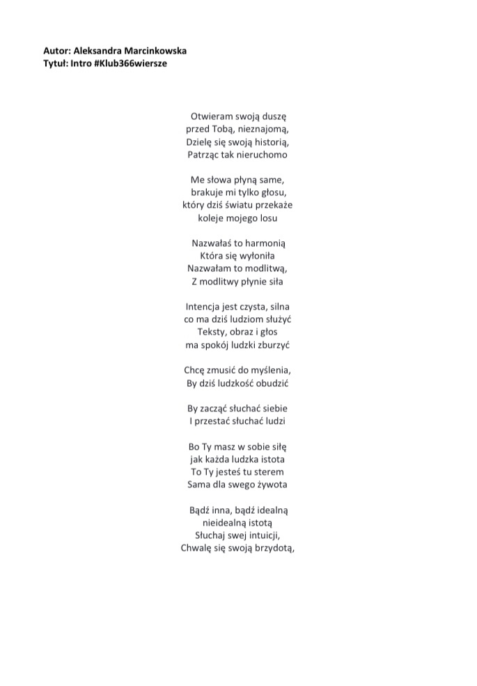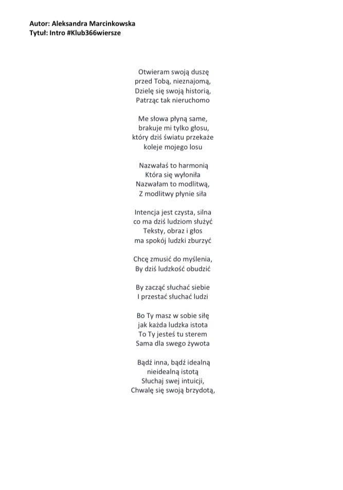 Wiersz 1 pt. Intro #Klub366wiersze: Kategoria Początek: