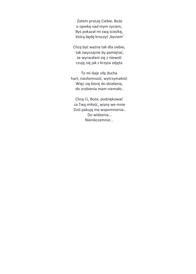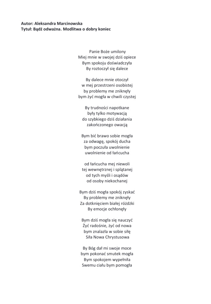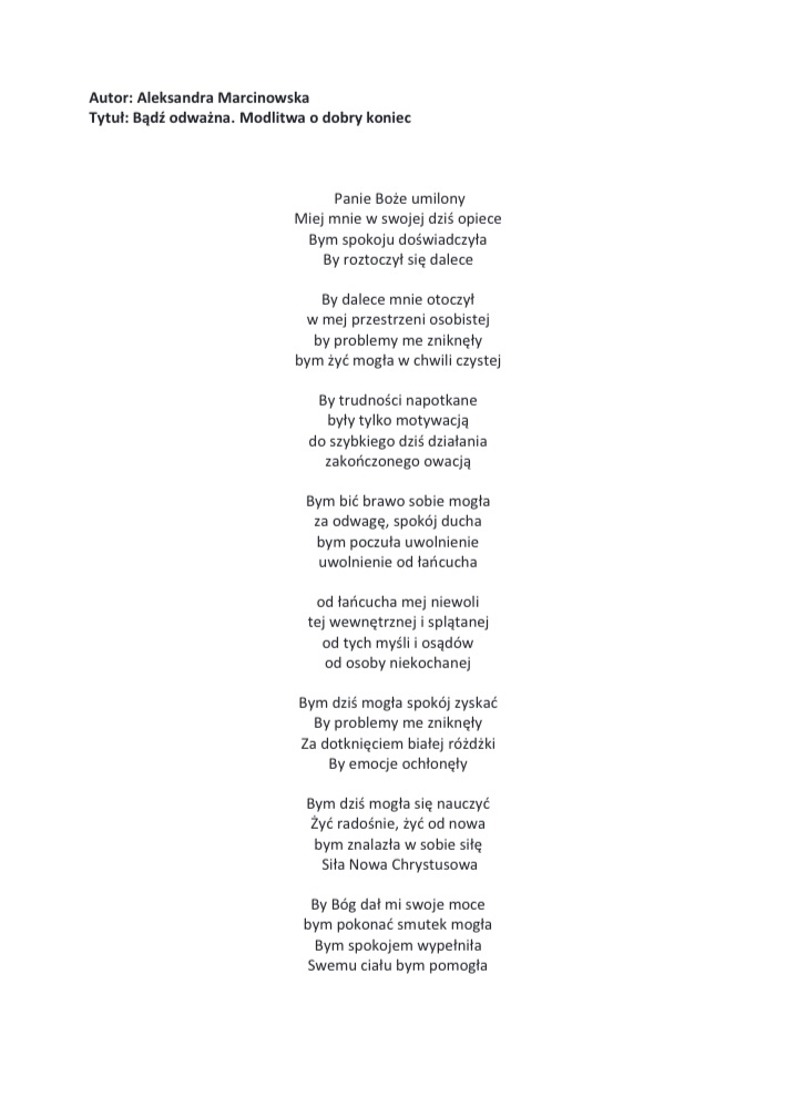 Wiersz 3 pt. Bądź odważna. Modlitwa o dobry koniec Kategoria: Modlitwa