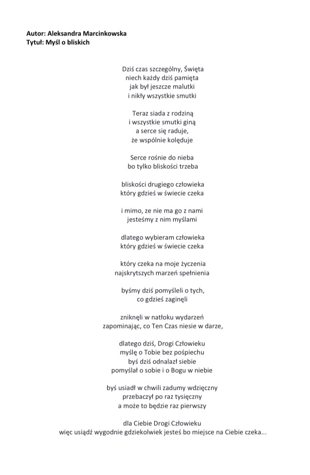 Wiersz 2 pt. Myśl o bliskich Kategoria: Dla Człowieka