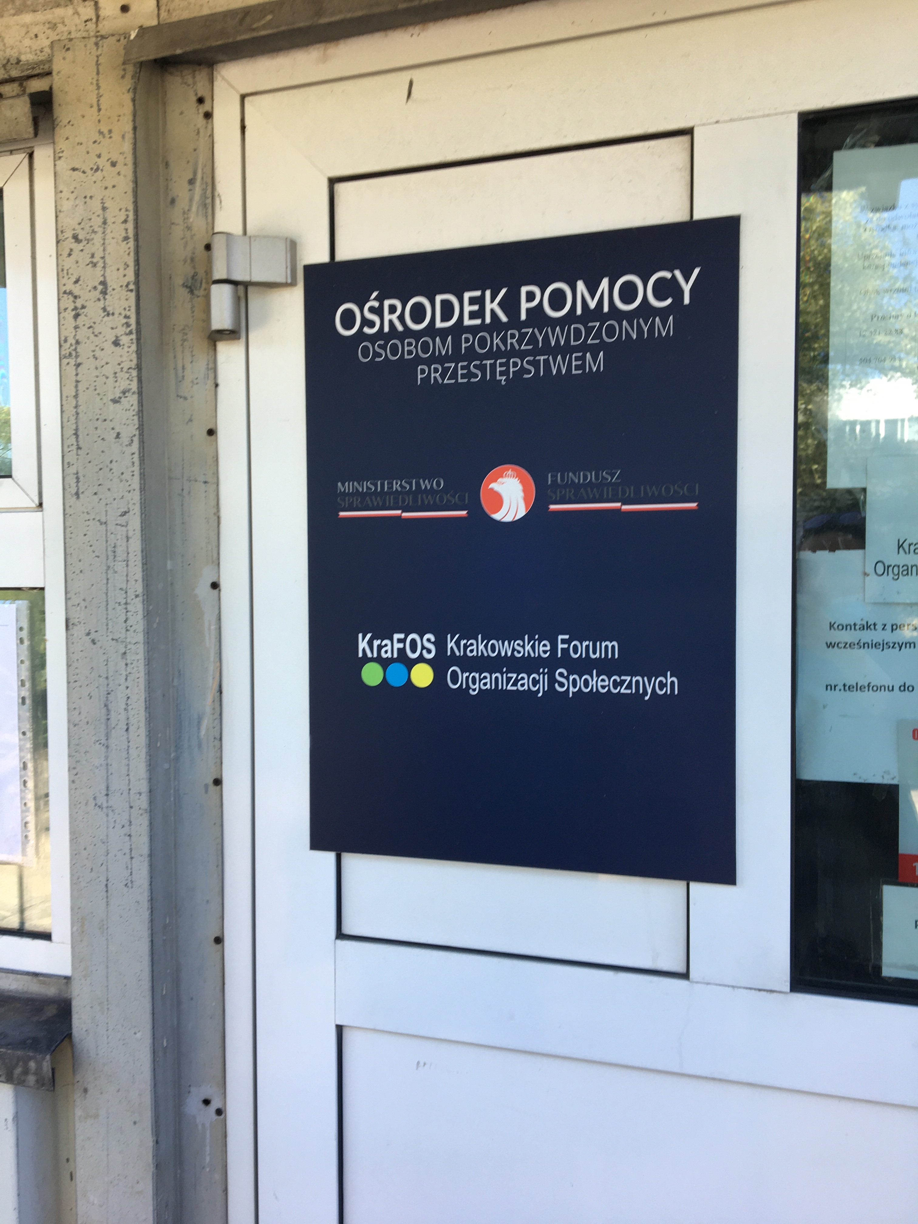 W ramach działań wynikających ze współpracy z KraFOS prowadzimy działania nakierowanie na uruchomienie kolejnej formy pomocy dla Polonii w postaci uruchomienia punktów informacyjnych w Kells w Irlandii oraz w Bradford w UK, gdyż bezpłatna pomoc prawna i psychologiczna może obejmować także naszych rodaków poza granicami Polski pokrzywdzonych / zagrożonych przestępstwem.