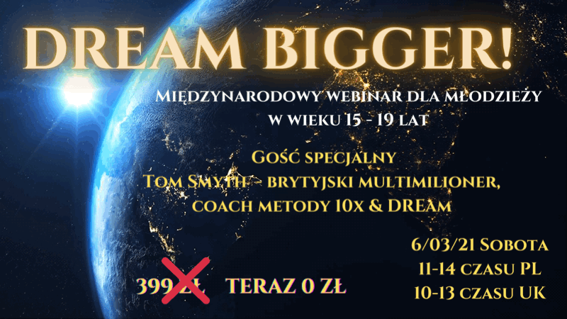 ⭐️⭐️⭐️⭐️⭐️ Budowanie swojej niezależności DREAM Bigger!” @TomSmyth – gość specjalny 🔝🔝🔝🔝🔝 British multimilioner, edukator, trener rozwoju, jako jedyny na Europę jako mentor reprezentuje Grant Cardone10X. Tom będzie inspirował młodzież swoją historią