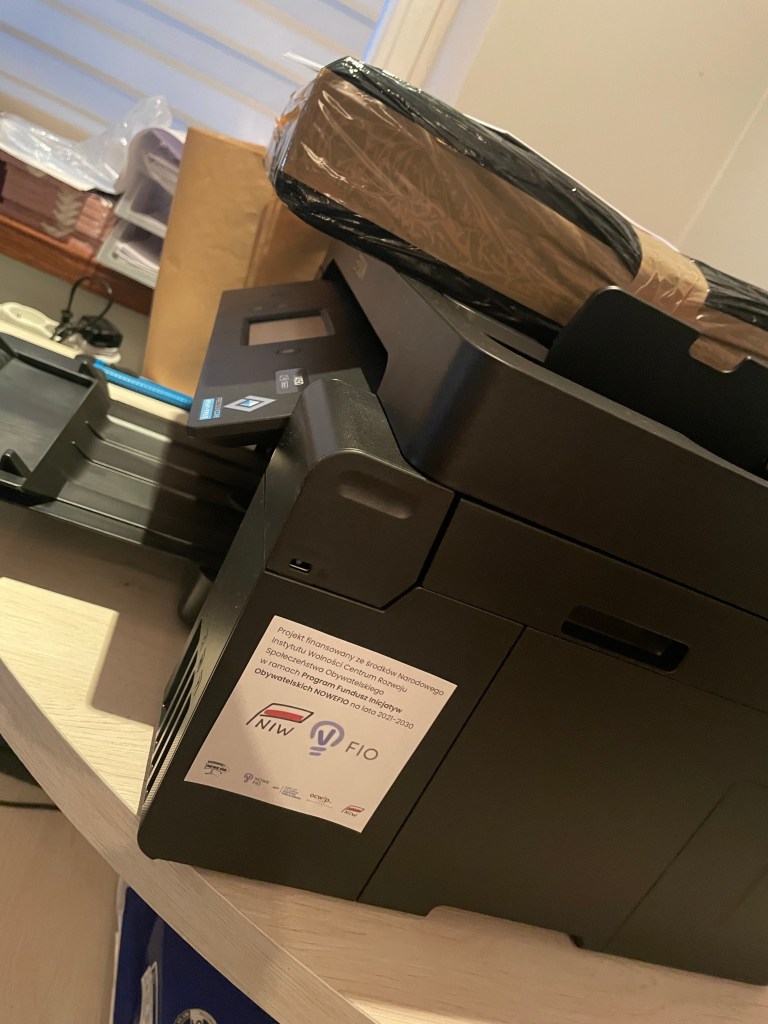 W ramach projektu „Doposażenie Fundacji Rozwoju Społecznego i Profilaktyki DIALOG w sprzęt niezbędny do realizacji działań statutowych” zakupiliśmy rower wraz z torbą i koszem oraz urządzanie wielofunkcyjne A3/A4 .