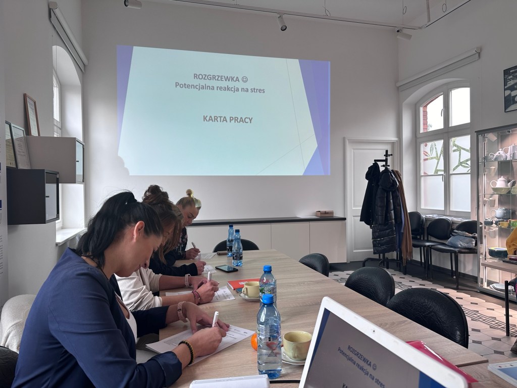 Uczestniczki miały okazję zgłębić teoretyczne aspekty zarządzania stresem pracując międzynarodową metodą DIALOG ®️. Poznały rodzaje stresu oraz reakcje organizmu, a także dowiedzieć się o wpływie hormonów takich jak adrenalina i kortyzol na nasze samopoczucie.